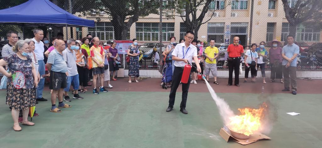 黄教官围绕“遵守安全生产法,当好第一责任人”活动主题,从现行及最近消防法律法规、消防安全管理制度及安全相关知识、单位火灾危险性及如何防范火灾、消防器材使用方法和配置及维护、公众场合安全和事故现场应急急救处理方法、车辆自燃自爆急救处理方法等7个方面,结合最近发生的典型火灾案例,通过鲜活生动的APP画面,以通俗易懂的语言,较为全面系统的向广大老同志作了宣讲,并现场进行了灭火演示,加深了广大老同志对消防安全工作的认识,强化了消防安全意识,提高了安全防范本领。