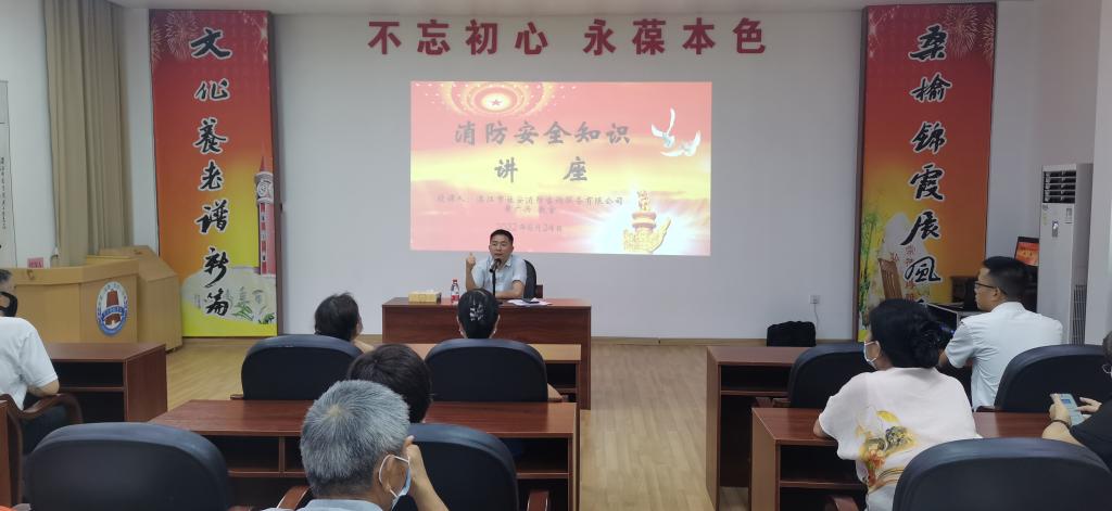 根据学校《关于开展2022年“安全生产月”活动的通知》要求,为提高广大老同志的消防安全意识,预防和减少火灾事故发生,6月24日下午,离退休人员服务中心特邀请湛江市社安消防咨询服务有限公司的黄广兴教官,为学校广大离退休老同志做了一场生动的消防安全知识专题讲座。