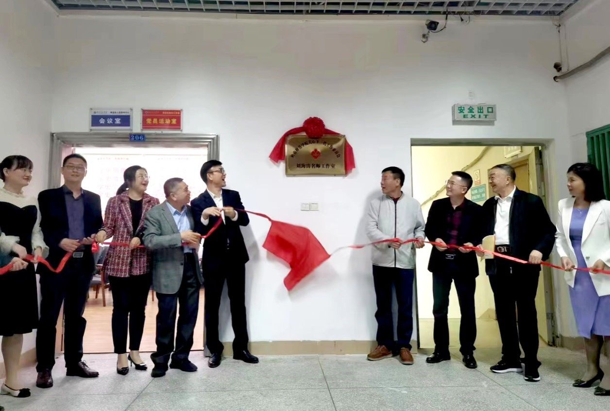 省关工委副主任、省教育系统关工委主任王玉学为“刘海涛名师工作室”揭牌