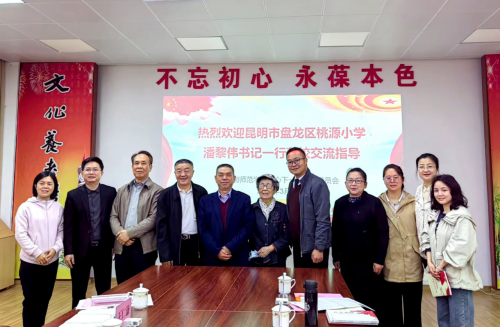 3月13日上午,昆明市盘龙区桃源小学校长潘黎伟带领杜明、肖芙、陀跃娟老师一行4人莅临校关工委研讨交流“海涛爷爷教你学写作”课程建设和校园文化建设等问题,并举行“刘海涛名师工作室”研究员聘任仪式。会议由学校关工委主任刘海涛教授主持。