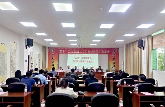 11月28日下午,学校第四届老年文化艺术节系列活动(六)——“五老”工作室新书《印象刘海涛》首发式在离退休人员服务中心会议室举办。校关工委“五老”主任和委员、二级学院关工委主任、“刘海涛名师工作室”成员、离退休人员服务中心全体工作人员近40人出席活动,首发式由离退休人员服务中心主任、校关工委秘书长欧海清主持。