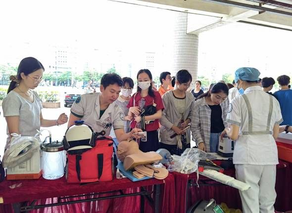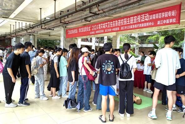 为贯彻落实省卫健委、省教育厅等五部门联合发文部署的通知精神。5月21日下午,校关工委协调校团委、门诊部,积极对接湛江市第一中医医院、湛江市120紧急医疗救援指挥中心、湛江中医学校等单位,联合在学校第四教学楼C栋一楼架空层举办“卫生应急进校园 学校家庭更安全”2024防灾减灾卫生应急进校园主题宣传活动。500多名学生受益参加活动。