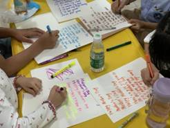 揭牌和开班仪式结束后,孩子们饶有兴趣地走进外国语课堂,这天刚好是母亲节,志愿者老师从对母亲的祝福用语入手,借助图案、歌曲、视频等方式,用纯正的口语、丰富的肢体语言和风趣幽默的授课方式,活动采用角色扮演、小组讨论、模拟对话等多种形式进行,老师和小朋友们互动热烈非凡,现场气氛达到高潮,让孩子们深刻体会到不一样的学习英语的乐趣。