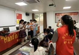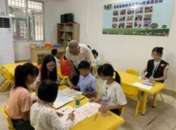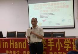 郑交致词,感谢岭南师院外语学院在每周日为孩子们提供的外国语学习志愿服务,此次开班仪式为大学生志愿服务搭建了关注留守儿童健康成长的良好平台,鼓励青年学子们要不断提升自身专业素养,以饱满的热情为社会作贡献。此外,他指出,赤坎区留守儿童辅导中心“四点半学校”的揭牌标志着赤坎区关工委关心青少年健康成长,推进社会公益事业提升到了一个新阶段,将会在全区选取八个中心(站)将“四点半课堂”打造成为关工工作品牌,切实构建起关爱平台。