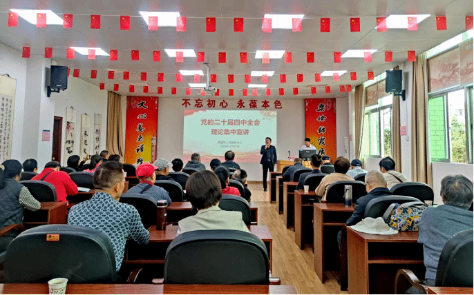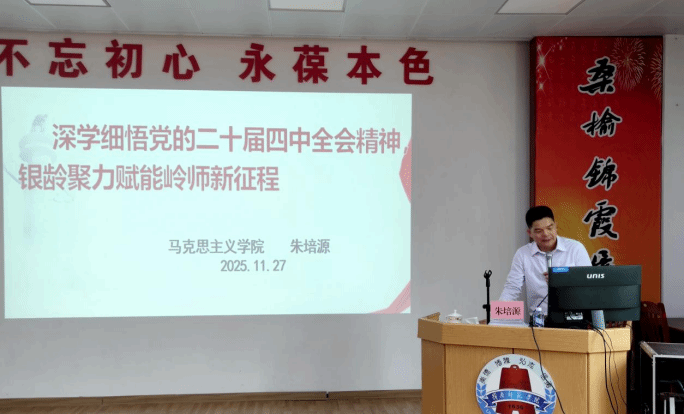 为深入学习贯彻党的二十届四中全会精神,引导离退休老同志准确把握会议核心要义与实践要求,11月27日下午,离退休人员服务中心党委组织开展党的二十届四中全会精神专题宣讲会。学校马克思主义学院朱培源博士受邀作宣讲报告,50余名离退休老同志、离退休党委委员、党支部书记和校关工委委员齐聚一堂聆听学习。宣讲会由离退休人员服务中心党委书记欧海清主持,学校原副校长刘周堂同志出席会议。