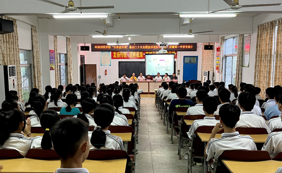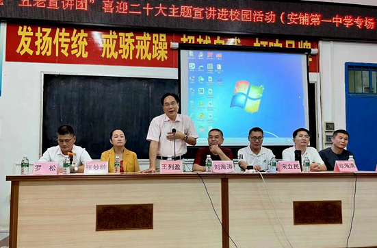 离退休人员服务中心党委书记、主任、校关工委秘书长欧海清,离退休人员服务中心副主任叶德波,校关工委办公室主任杨梅和安铺一中师生代表共120余人参加了宣讲活动。