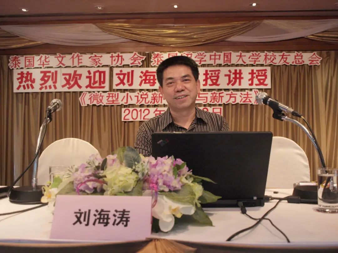 2020年疫情出现后,刘教授主讲的慕课“文学创意写作”,在“学习强国”和中国大学MOOC上线了,已有20多万的同学和学员参加了“云课堂”的学习,他的线上教学被评为“广东疫情期间优秀教学案例”一等奖;在创建关工委的工作品牌时,他建设了“青少年创意写作40讲”和“海涛爷爷教你学写作”等公益课;还应马来西亚和印尼的邀请,出国担任华校师生“文学训练营”的讲师和华文写作比赛的国际评委,他走出国门去讲课了。