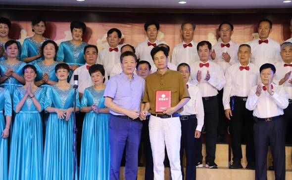 湛江市政协原副主席、湛江市老干部大学校长吕冠嵘为大合唱班老师陈平山颁奖
