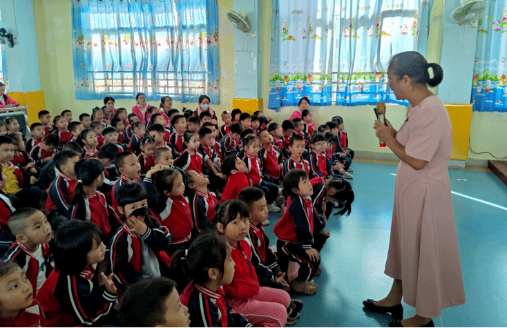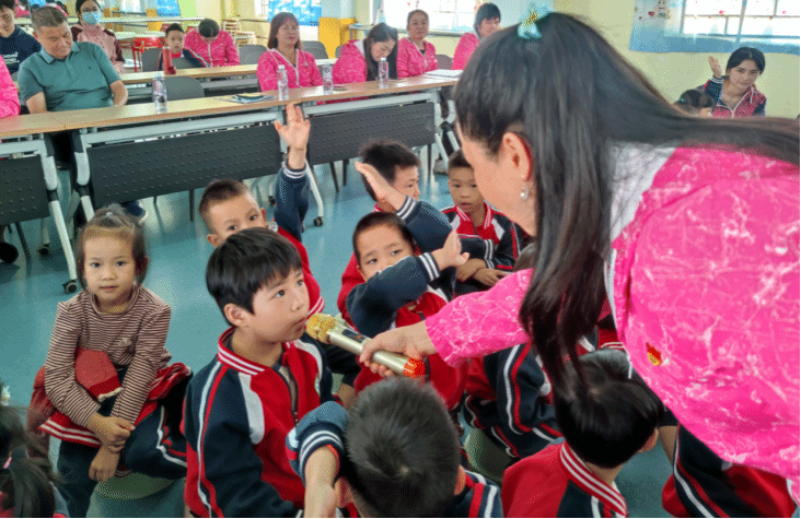 以校园风光为引,李爱群教授用生动鲜活的语言、详实可感的史料,为孩子们打造了一场别开生面的红色盛宴。她深情讲述岭师红色先驱谭平山、黄学增的英勇事迹,以幼儿易懂的表达诠释革命先辈的家国情怀;分享历届岭师援疆学子在边疆教育一线坚守奉献的青春故事,让孩子们直观感受榜样的力量;最后聚焦幼儿园自身的获奖历程,鼓励孩子们珍惜荣誉,争做爱学习、敢担当、守自律、强体魄的新时代好少年,点燃孩子们对生活与学习的热爱。