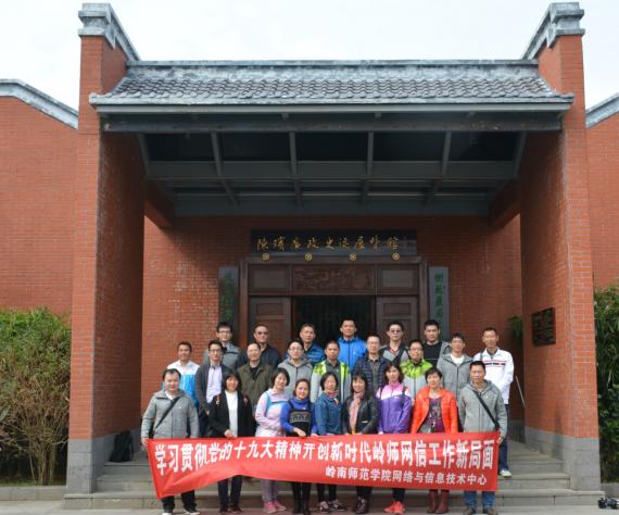在参观结束后,陈友南副书记还结合中心工作实际,给参加人员现场上了一堂名为——“不忘初心、牢记使命,开创新时代岭师网信中心工作新局面”的“微党课”。他指出,“不忘初心,牢记使命是党的十九大主题,中国共产党人的初心和使命,就是为中国人民谋幸福,全心全意为人民服务。网络与信息技术中心作为学校的教辅部门之一,担负着服务师生、服务教学的重任。要将不忘初心、牢记使命作为中心工作的指导思想,以服务师生为宗旨,将师生对服务的满意度作为工作的考核评价标准,不断提高中心的服务水平和服务质量,不断提高我校师生的幸福指数,进而开创新时代岭师网信中心的工作新局面。”