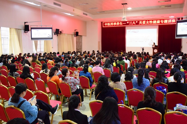 “女人娇艳如胜花,掌握好的养生知识,能使花更加娇艳。”湛江中医学校中医教研室主任李道婷结合当春时节的养生特点,向在场女性同胞推广中医养生理念与春季疾病预防方法,为女性养生健康提供良方佳药。讲座里的食疗方子、养生花茶、药对食对、保健穴等中医养护方法引得在场女性同胞纷纷拿起手机拍照记录,会场交流声与赞叹声不绝如缕。