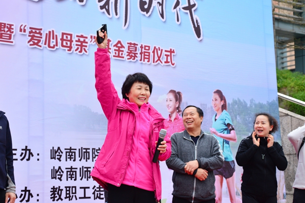 岭师新闻中心讯:3月8日下午,我校举行第二届“巾帼心向党 建功新时代”健康徒步暨“爱心母亲”基金募捐仪式活动,学校党委副书记黄达海、副校长兰艳泽和学校300多位女职工一起参加活动,共同庆祝第108个“三八”国际妇女节。