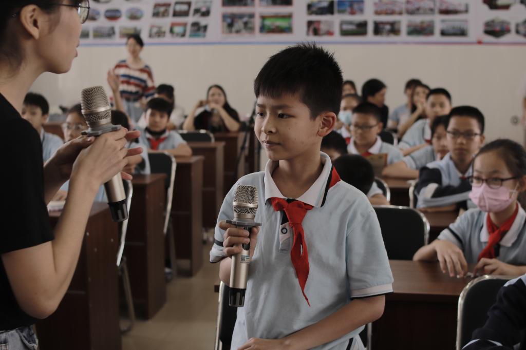 宣讲后,一场别开生面的党史知识问答游戏掀起活动的高潮。同学们热情高涨,积极举手参与,表现出强烈的爱国爱党情。“感恩共产党!”“将来我也想成为一名中国共产党党员!” 伴随着浓烈的党史学习气氛,同学们真诚地表达出对党诚挚的祝福与向往。