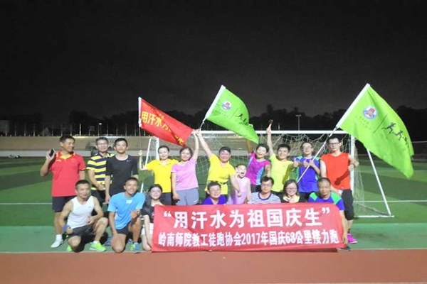 岭师新闻中心讯:“加油!”“继续坚持!”……9月30日下午,教工徒跑协会在田径场开展以“用汗水为祖国庆生”为主题的2017年国庆68公里接力跑活动。