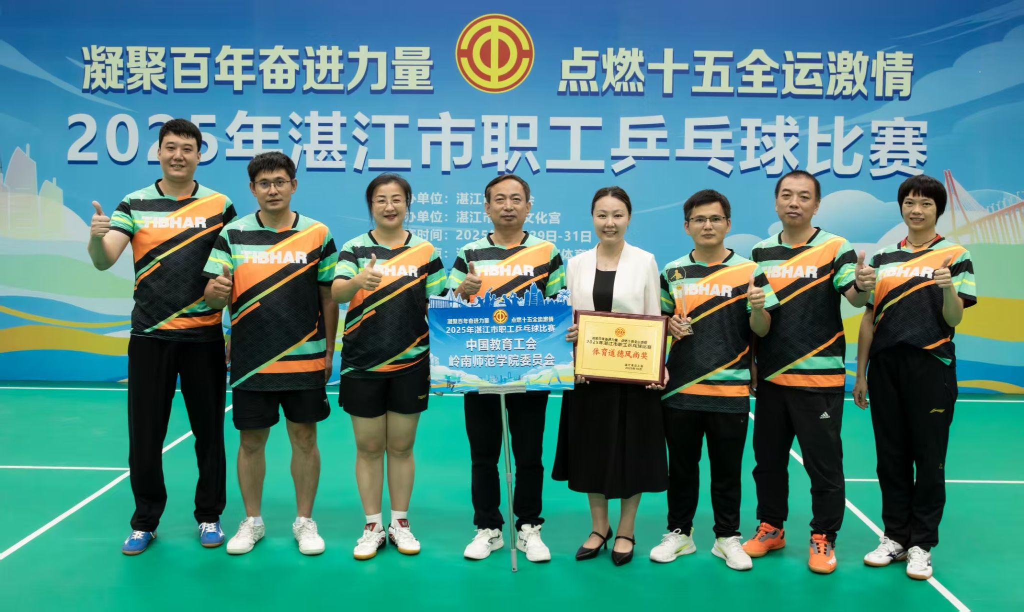 10月29日至31日,由湛江市总工会主办、湛江市工人文化宫承办的“2025年湛江市职工乒乓球比赛”圆满举行。在竞争激烈的公开组混合团体赛中,学校教职工代表队从24支参赛队伍中一路过关斩将,最终勇夺亚军,并荣获“体育道德风尚奖”,取得运动成绩与精神文明双丰收。