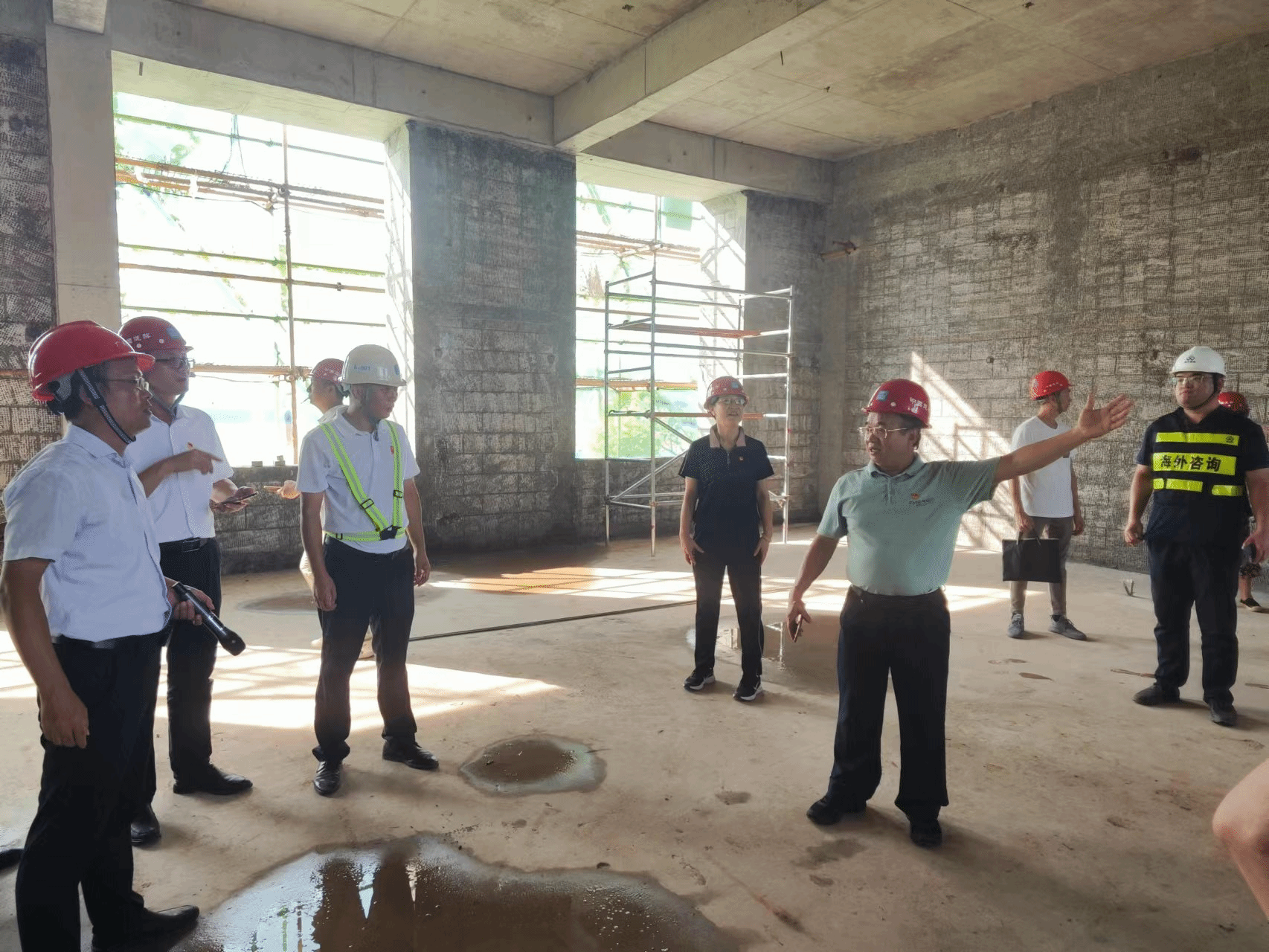 苏古发带领两个支部全体党员深入施工现场,查看了工程项目建设情况,时常驻足询问,就发现的问题提出整改意见。
