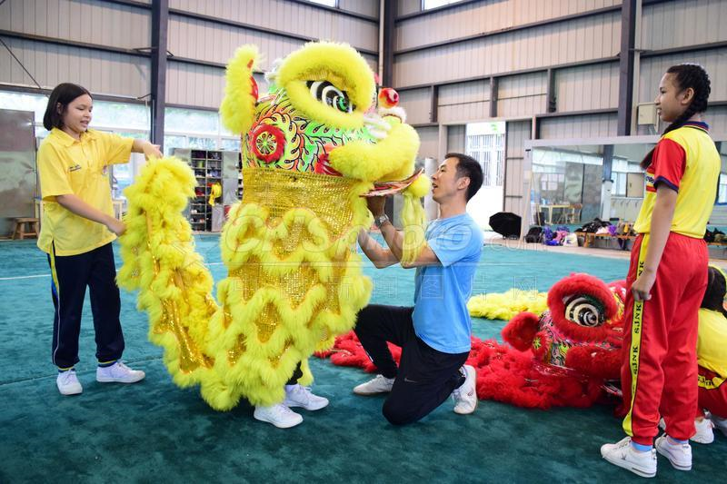 10月17日,在广东岭南师范学院参加汉语学习及中国文化体验营活动的33名泰国中小学生,参加中国舞狮的体验课程。