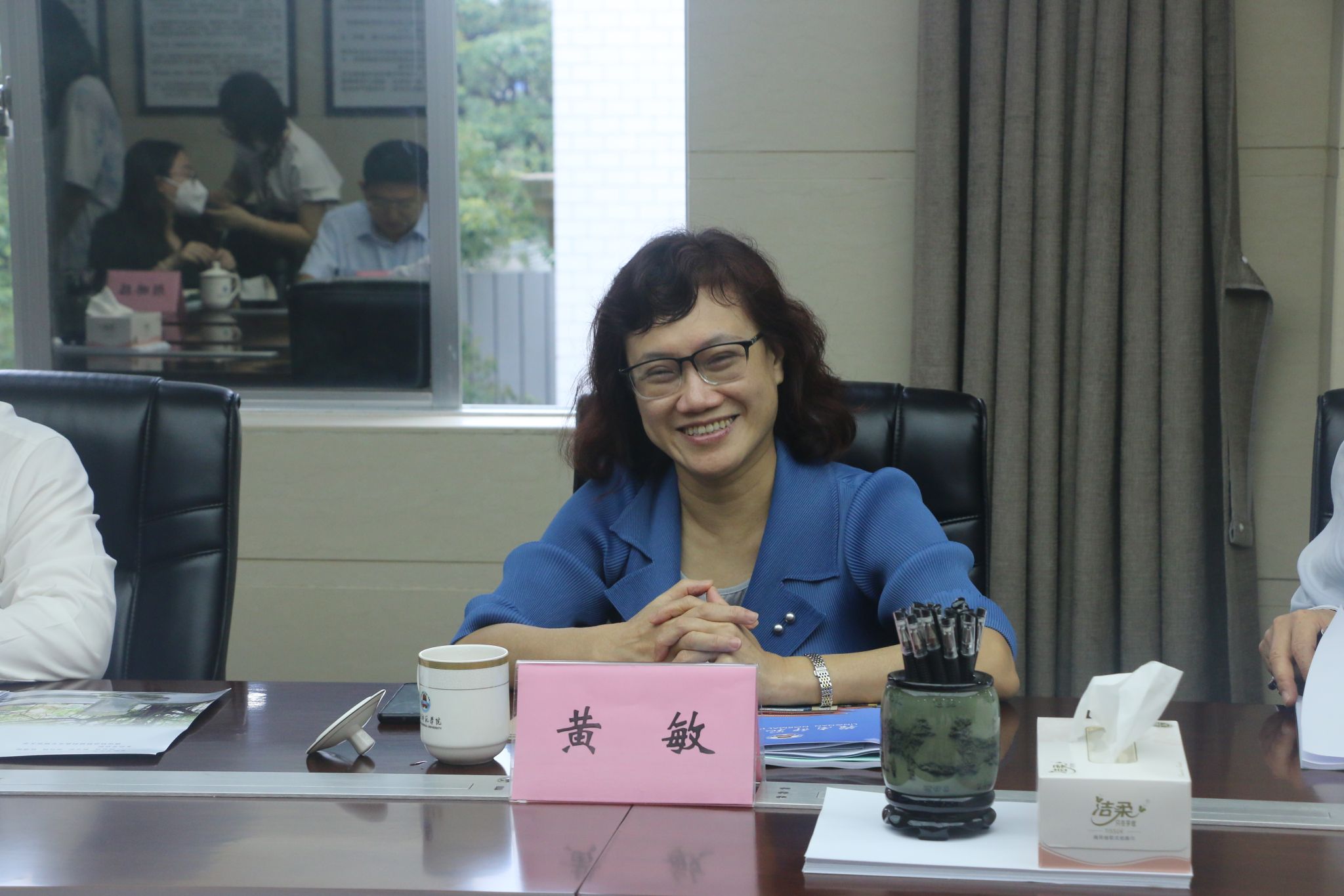 黄敏处长对学校近年来在对国际交流与合作等方面取得的成绩表示肯定。她表示,为推动学习贯彻习近平新时代中国特色社会主义思想主题教育走深走实,结合工作实际,此行旨在就推广优化简化学校及教学科研人员出访手续等事宜开展调研,在平台机制建设、国际交流、定点合作等方面积极探索,提升广东省对外开放水平。