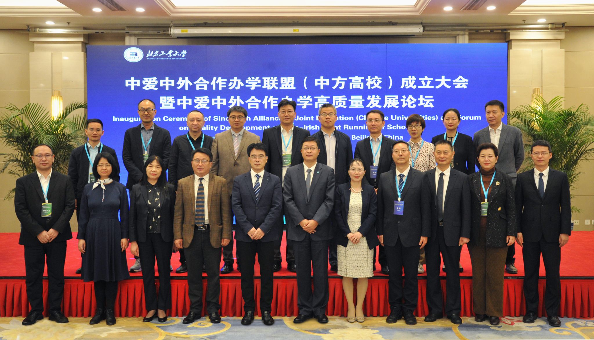 10月26日,中爱中外合作办学联盟成立大会暨中爱中外合作办学高质量发展论坛召开。中爱中外合作办学联盟(中方高校)由教育部中国教育国际交流协会倡议,北京工业大学发起,联合30余所中方高校共同成立。我校作为联盟常务理事单位,由我校戴黍副校长率规划与法规处郭和才处长、国际交流与合作处郑志军处长及国际交流与合作处相关人员参会。