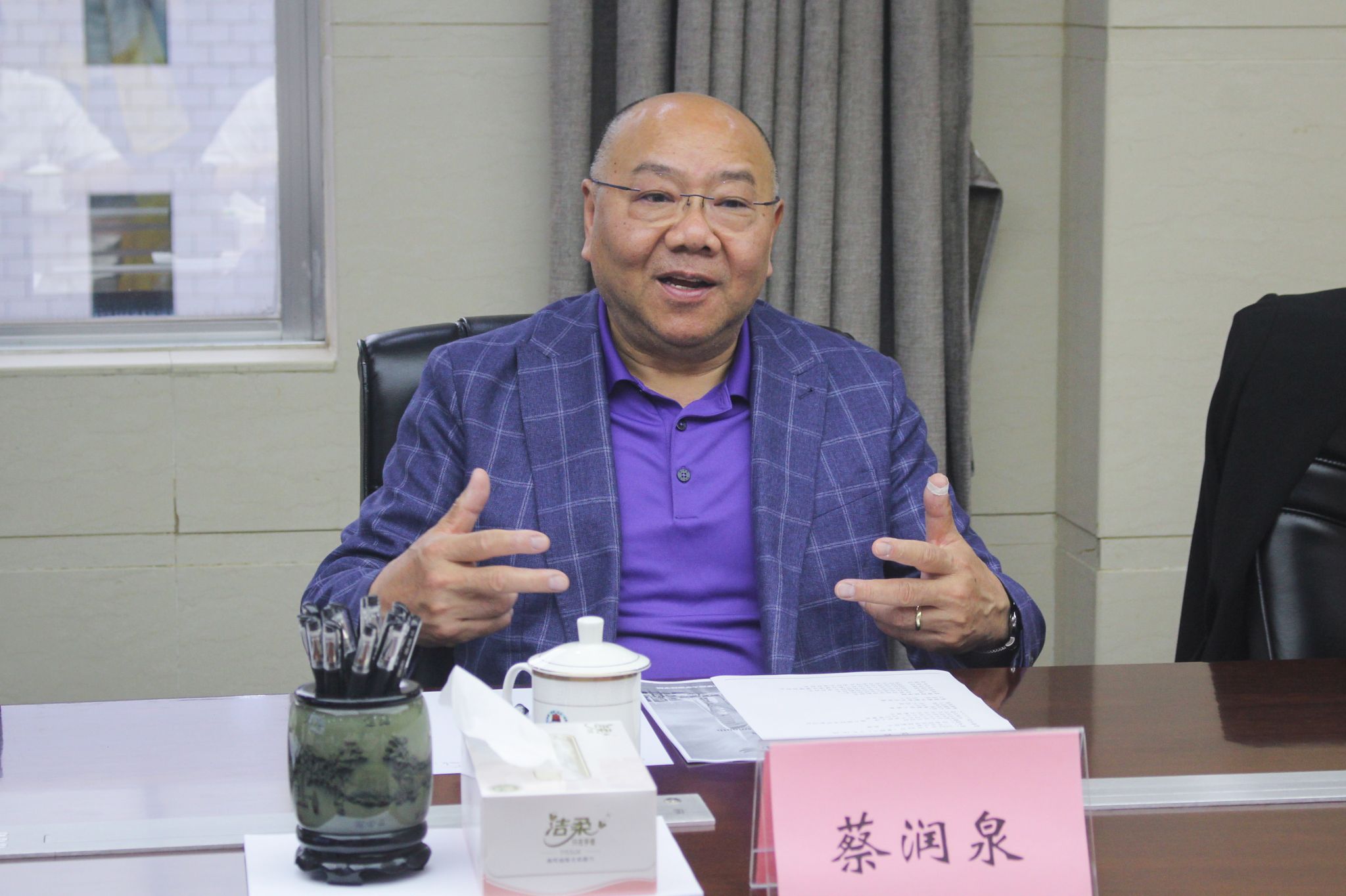 双方在学校一号会议室举行交流座谈会。副校长吴涛主持会议。吴涛对蔡润泉一行的到访表示热烈欢迎,并简要介绍了我校国际化办学方面的近况。他表示,我校对国际对外交流合作给予高度关注和秉持开放态度,期待与英国朴次茅斯华人协会进一步开展合作。