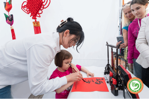 白体大孔院通过“静态展示+动态体验+趣味互动”的立体呈现方式,让当地民众沉浸式感受中华传统文化的多元魅力,成为文化节人气焦点。身着汉服的教师开设"移动文化课堂";书法区"翰墨工坊"让参与者创作作品留念;汉字游戏区通过"汉字配对"展现文字魅力;传统"抓石子"游戏让白俄罗斯民众体验到了中国传统游戏的智慧与乐趣;剪纸区让民众体验窗花剪纸艺术;汉字游戏区通过趣味竞赛展示汉字结构之美;茶艺区陈列六种名茶,老师讲解"茶香即风土"的奥妙;投壶区重现古代礼仪游戏,参与者感受传统射礼;压轴的舞龙舞狮表演最受欢迎,金龙翻腾、雄狮采青的精彩表演引发阵阵喝彩,观众们或拍照记录,或随队伍起舞,孩子们追逐龙珠嬉戏,现场洋溢着欢乐的文化交流氛围。