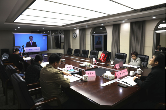 岭南师范学院副校长戴黍作为大会的正式代表,在学校一号会议室出席了线上开幕式。岭南师范学院国际交流与合作处处长郑志军、副处长陈婵娟及其他国交处相关工作人员共同在线上参加了大会开幕式。