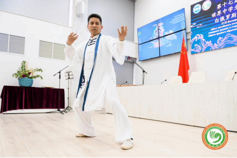 比赛之余,白体大孔院武术教师唐守彦等在现场进行了“舞蹈水袖”、“陈式五十六式太极拳”和武术双人对练“空手夺枪”等的展示,深受观众好评。
