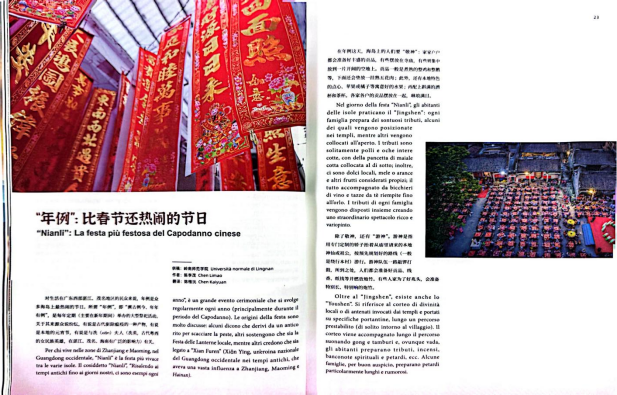 2024年6月,在我校国际交流与合作处的积极引荐下,我校文学与传媒学院陈李茂老师在《孔子学院》杂志2023年第6期发表题为“年例”: 比春节还热闹的节日的文章。文章主要讲述了在广东西部、茂名地区每年定期举办的大型祭祀活动--年例(即溯古例今、年年有例)。此文章的发表唤醒了一段段超越时空的友谊,展现出中华文化的魅力,传播中国广东西部优秀传统文化,显现正面的中国形象,助力中国文化走出去。