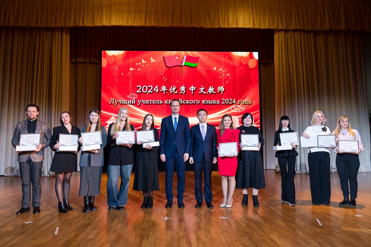 11月12日,2024年度“中国大使奖学金”颁奖典礼在白俄罗斯国立体育大学隆重举行。此次典礼由中国驻白俄罗斯大使馆主办,白俄罗斯国立体育大学孔子学院(以下简称“白体大孔院”)踊跃承办。此次典礼吸引了众多重量级嘉宾参与,包括中华人民共和国驻白俄罗斯大使馆大使张汶川、白俄罗斯教育部副部长卡德卢拜、白俄罗斯国立体育大学校长列普金出席并致辞,学校校长阳爱民代表学校出席颁奖典礼并为中文教学工作示范单位颁奖,白俄罗斯国立大学、白俄罗斯国立技术大学等高校领导和师生代表,获奖的白俄罗斯大中小学生及其家长,中国在白孔子学院教师、志愿者代表等800余人。