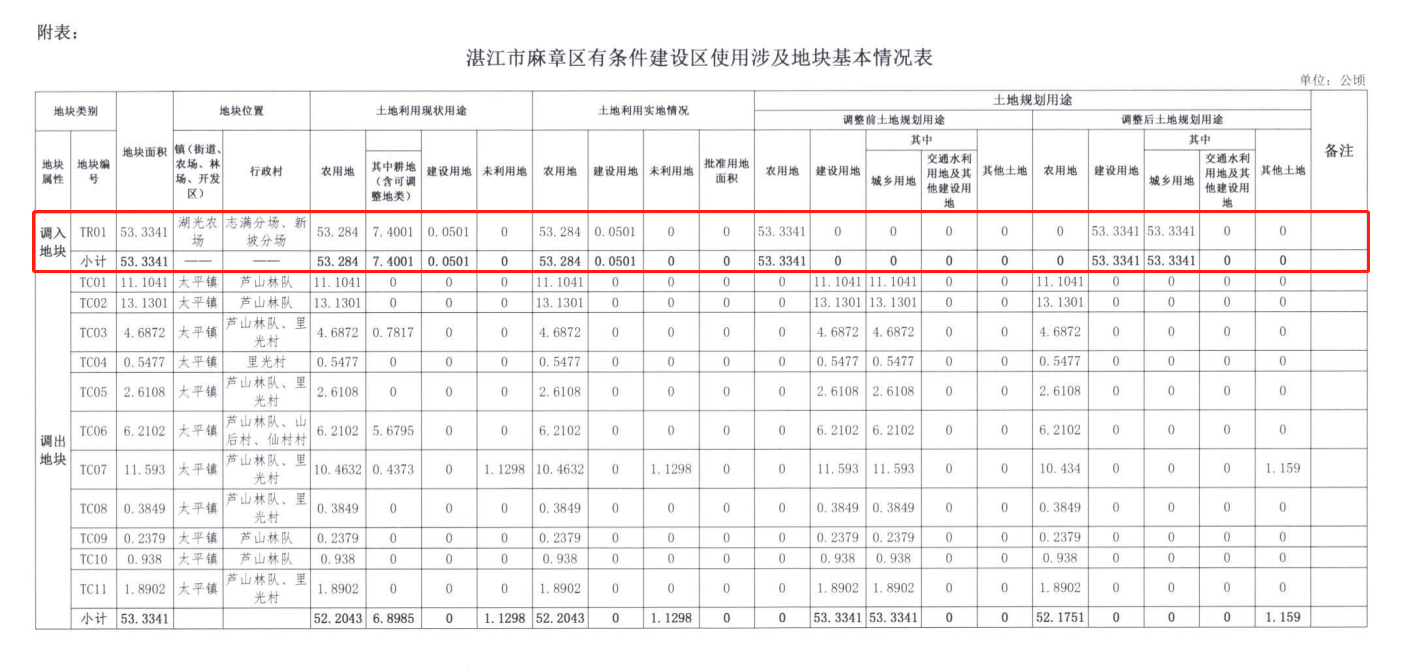 3月25日,广东省自然资源厅正式批复同意湛江市麻章区土地利用总体规划有条件建设区使用方案,原则同意我校湖光校区一期建设项目使用800亩(53.3341公顷)的土规调整指标。