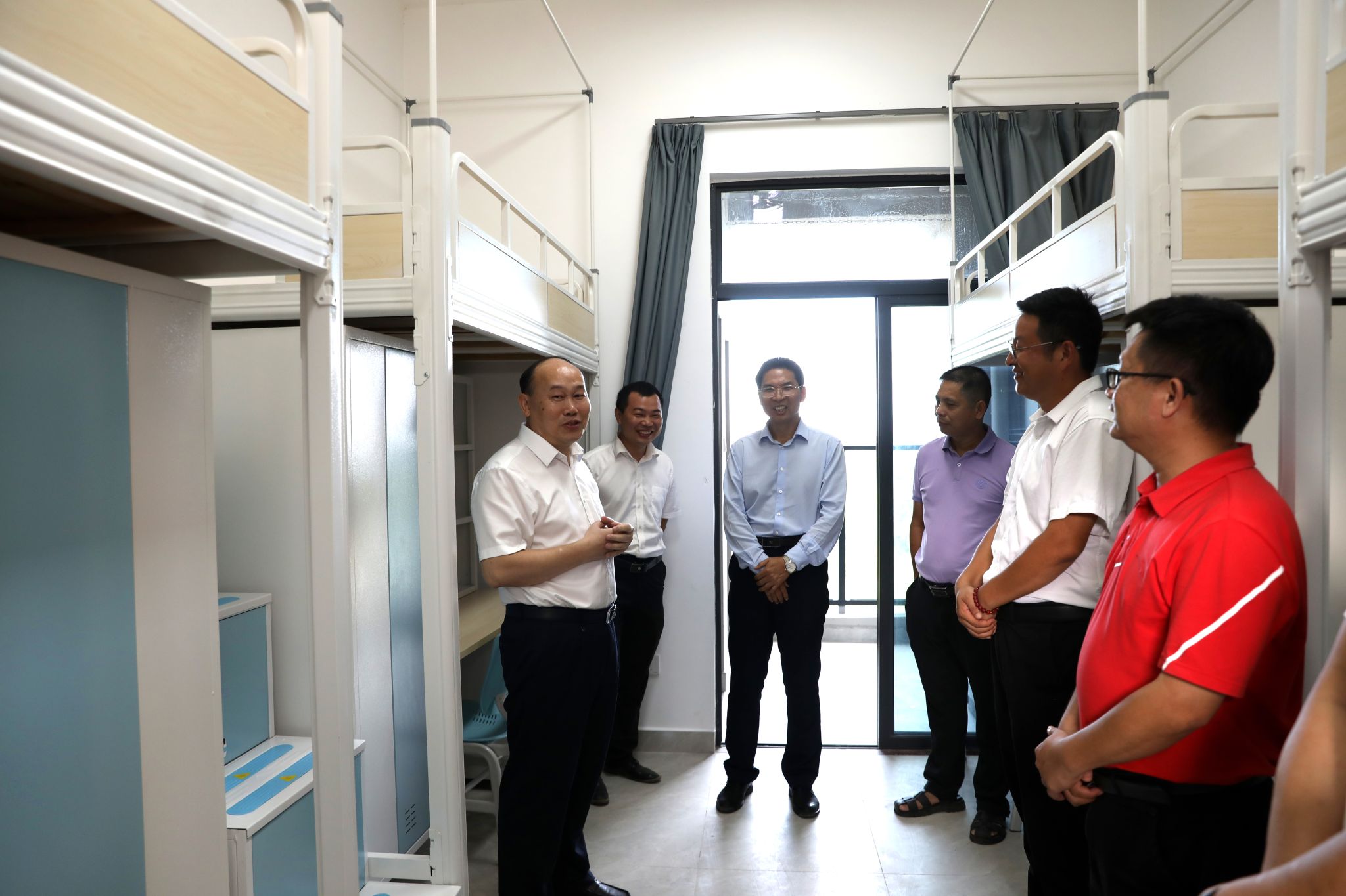 校长阳爱民、党委副书记林晓敏率队走进湖光校区已完工D2栋学生宿舍楼调研