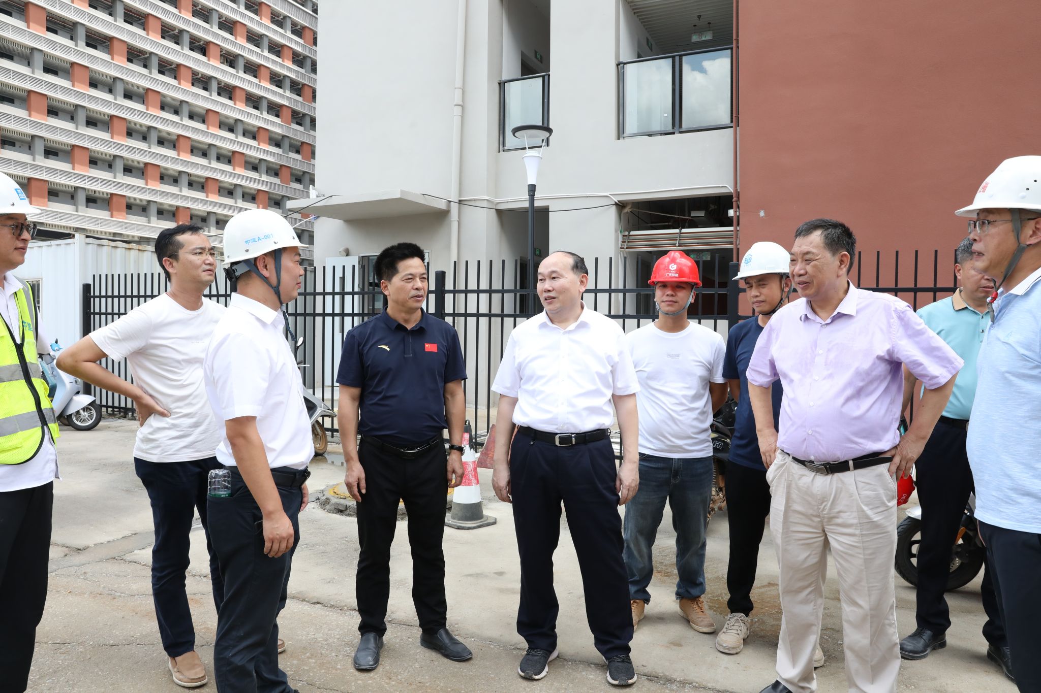 岭师新闻中心讯:7月3日,校长阳爱民、副校长刘坤章率队走进湖光校区,调研D2学生宿舍楼、鲲园饭堂二层等项目建设进度。目前在建项目主体已完工,精装修完成80%。