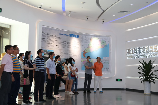 在湛江规划展览馆,党员同志们参观学习了在党领导下的湛江规划发展史,通过声、光、电等现代化多媒体技术,饶有兴趣地体验了湛江未来发展的美丽近景和远景。党员同志们表示,“湛江位于粤港澳大湾区、深圳先行示范区、海南自由贸易港、北部湾城市群等国家战略交汇处,我们学校立足湛江办学,享有重大发展机遇”“湛江拥有丰富海洋资源、天然深水良港,形成了以海洋经济为引领,以钢铁和石化等临港大工业为主导的特色产业体系,我们学校的规划发展应积极对接,推动实现高质量发展”。