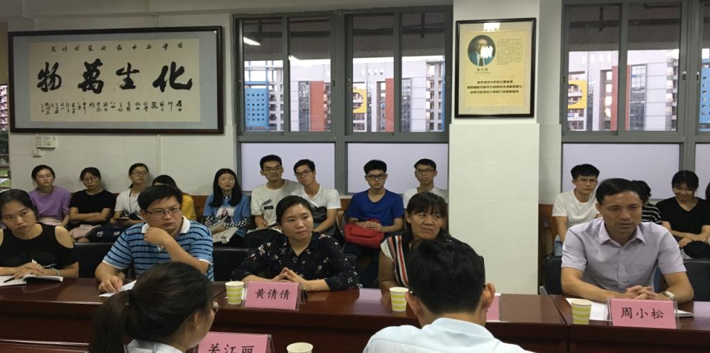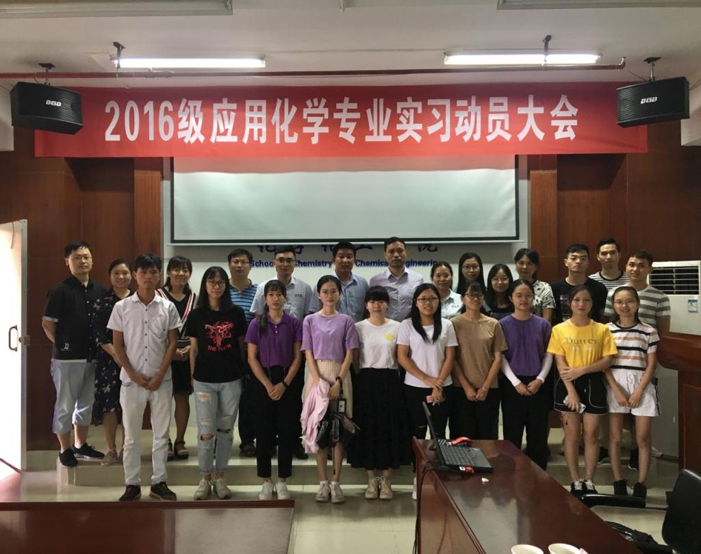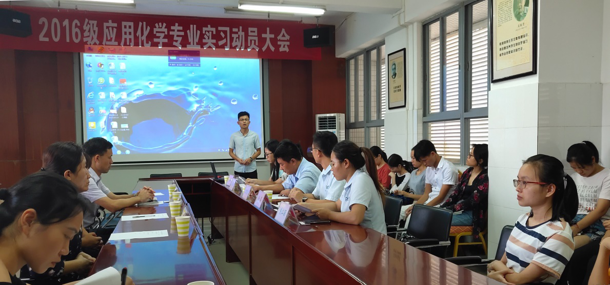 9月9日下午,16级应用化学专业实习动员大会在学院会议室召开,化学化工学院周小松副院长、马琳系主任、宋江莉、黄倩倩、张国强、阮文科等老师莅临现场,同时受我院领导邀请,湛江聚鑫新能源有限公司刘明东总经理和人事部冯美金、陈凤婷小姐以及广东东岛新能源股份有限公司杨攀总监和人事部关江丽小姐等作为嘉宾出席会议。会议由阮文科老师主持。