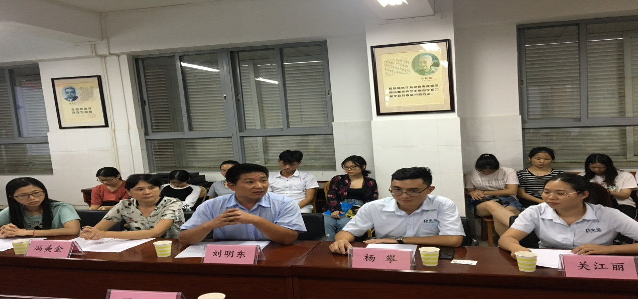 在互动环节中,同学们积极发问,踊跃参与,提出到企业实习可能面临的困惑。湛江聚鑫新能源有限公司刘明东总经理结合自己十多年来的亲身工作经历为同学们一一答疑解惑,他表示现在的大学生是未来的主力军,必须敢于提问敢于拼搏,在岗位上要任劳任怨,客户至上,服务企业,争取成为一名全面发展的职业人才。