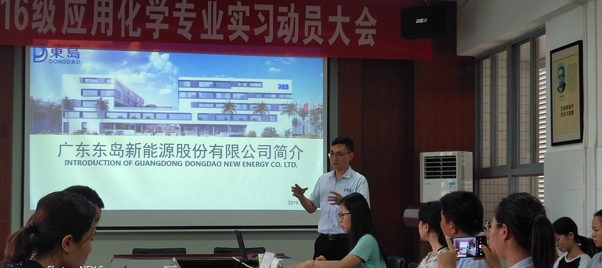 首先阮文科老师介绍本次会议主要目的,他表示毕业实习是人才培养方案的重要组成部分,是理论与实践相结合的重要环节。为进一步做好2020届毕业生实习工作,确保实习质量,我院积极响应学校号召,举办16级应用化学专业实习动员大会,同时也非常荣幸邀请了广东东岛新能源股份有限公司和湛江聚鑫新能源有限公司的领导及相关人事参与本次大会,让在座同学们与企业有了一次更好的面对面交流.