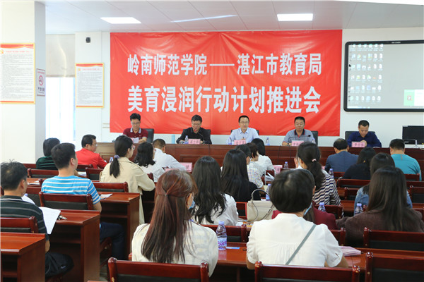 湛江市教育局相关科室负责人、湛江市遂溪县教育局体卫艺股相关负责人、岭南师范学院相关部门负责人及二级学院教师代表参加了会议。