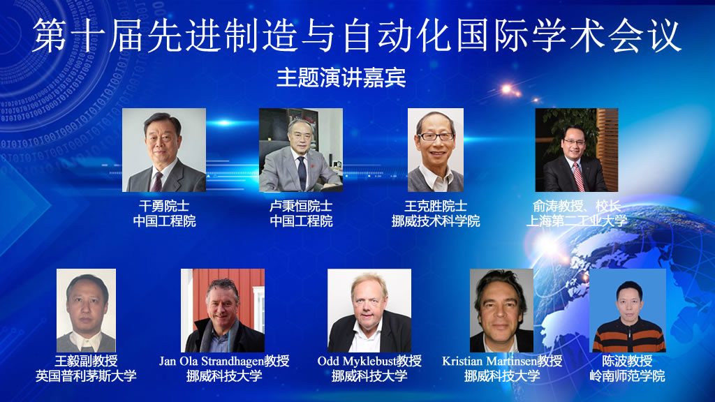 会议采用专家主题演讲,成果展览和专题研讨会的形式。主题演讲邀请到中国工程院副院长干勇院士、中国工程院卢秉恒院士、挪威技术科学院王克胜院士、挪威国家智能制造实验室主任Kristian Martinsen教授、上海第二工业大学校长俞涛教授等9位国内外专家,各位专家将最新的研究成果与会学者进行交流和分享。
