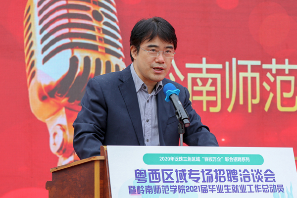 岭南师范学院副校长戴黍,广东省人才服务局副局长李金洋,广东省大学生创业就业促进会副会长蔡文光、秘书长曾伟鹏等领导和企业及毕业生代表共同启动了“就业工作总动员”仪式。洽谈会由招生与就业处处长李粤主持。