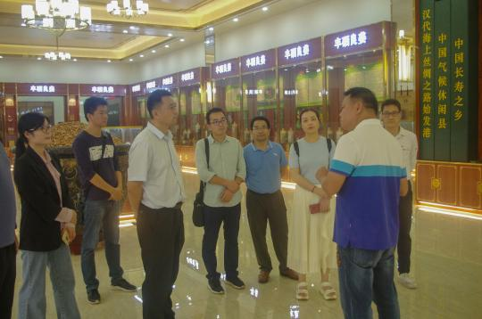 现场考察之后,高良姜生产基地负责人杨经理邀请服务队前往广东丰硒良姜有限公司进行参观,黄亮舞董事长对王胜副校长一行表示热烈欢迎,并亲自带领参观生产车间,期间对高良姜的未来发展、产品加工、科研技术攻关、人才培养等方面进行深入交流,双方都表达出浓厚的合作意向。