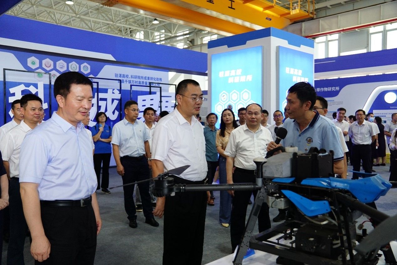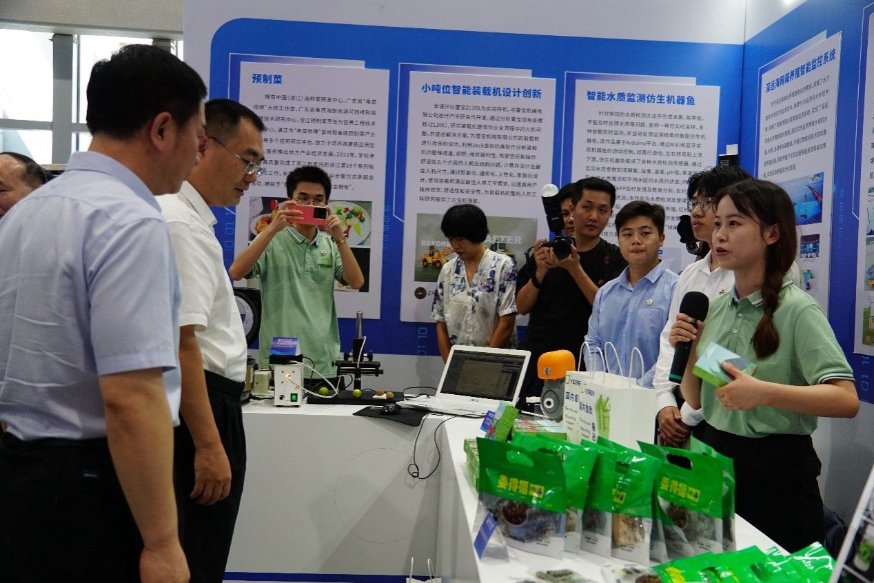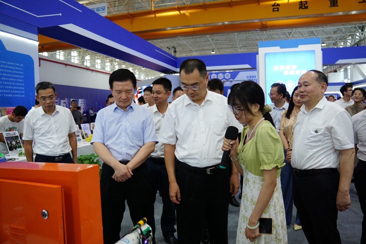 会前,学校相关成果团队负责人或成员向与会领导介绍科技成果。市委书记刘红兵、市长曾进泽等在阳爱民校长的陪同下,对学校参展成果进行了一一的了解,并给予了充分的肯定。刘锴栋团队着重介绍了热带特色果蔬高效栽培及采后贮藏保鲜技术。项立团队介绍了新型农药喷洒智能设备。黄丽平团队介绍了高良姜高值化产品研发。陈小军团队介绍了智能水质检测仿生机器鱼。其他团队或成员分别介绍了贝类重金属污染快速检测仪、电饭煲检测仪,智慧农场检测仪,智能消毒仪,春砂仁养胃系列新资源食品等科研成果。