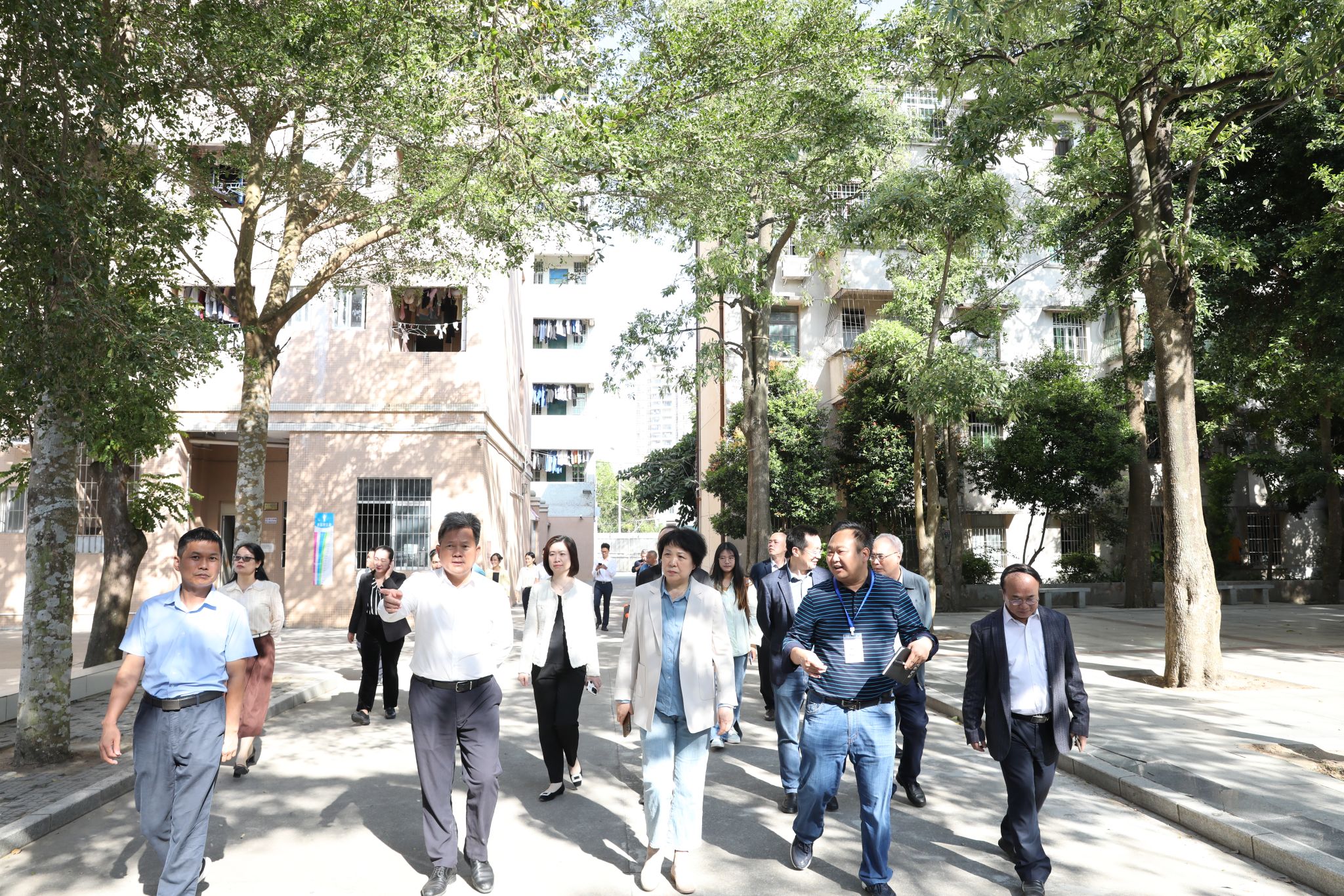 岭南师范学院党委书记兰艳泽一行在坡头区委书记陈景泰,区委副书记、区长黄哲辉等陪同下走进爱周中学进行实地调研。