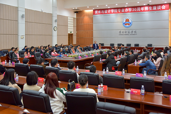 原美术学院院长王黎明教授20多年前从大西北来到南海之滨,他是学院办学的参与者与见证者,希望学院注重艺术规律,踏实办学,争取取得更辉煌的成绩。美术与设计学院院长巨云和表示,“崇德尚艺”推进学院的教育事业不断向前发展,学院的办学目标是培养有高尚品格、有社会责任担当、有扎实基础知识和专业应用能力的高素质艺术人才。