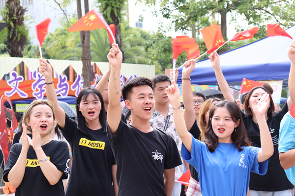 音乐与舞蹈学院沈炳强同学是一名大四的学生,他告诉记者,这是他第一次遇见的新颖迎新形式,能够参与其中,让他很荣幸也很满足,他自豪地喊出了自己的心声:“我爱岭师,我爱中国!”