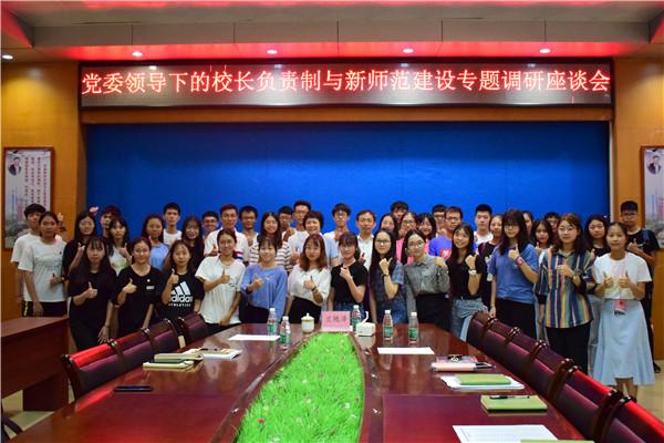 根据学校“不忘初心、牢记使命”主题教育工作安排,兰艳泽校长负责党委领导下的校长负责制与新师范建设提升办学质量和层次专题的调研,从9月29日起,分别组织了教授代表、相关职能部门负责人、分工会主席、各二级学院分管科研副院长、分管教学副院长、学生代表等各方面代表召开座谈会,深入党委办、校长办、教务处、教师教育学院调研,检视学校在落实党委领导下的校长负责制和推进新师范建设方面存在问题,为下一步整改工作打下良好基础。