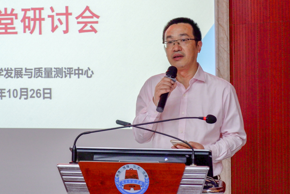岭南师院教学发展与质量测评中心吴涛主任主持了上午的会议,教务处尹宁伟副处长,各二级学院分管教学的副院长及部分教师代表参加了集中研讨。