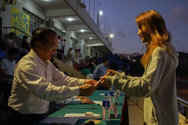 副校长苏古发为破纪录者颁奖(杨粤晴摄)