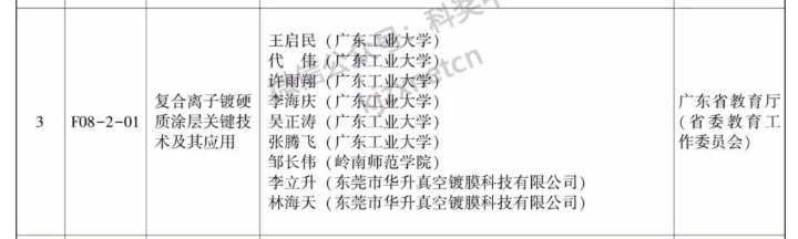 4月15日广东省科技创新大会在广州举行,会上颁发了2021年度广东省科学技术奖。由我校作为第二完成单位、物理科学与技术学院邹长伟教授为主要完成人的项目“复合离子镀硬质涂层关键技术及其应用”荣获广东省科学技术奖——技术发明奖二等奖,是我校第一次获得省级技术发明奖,也是湛江市高校2021年唯一获奖项目,在粤东西北同类高校中居于前列。此成果为我校“冲补强”重点学科材料科学与工程和材料与化工硕士学位点建设提供了有力支撑。