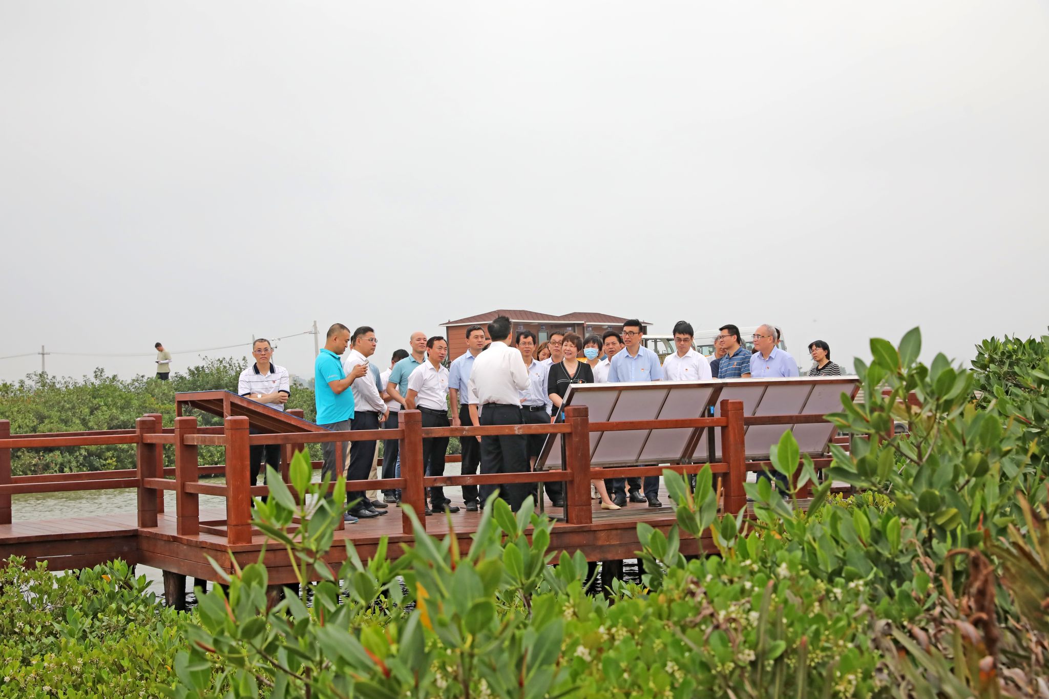 兰艳泽一行倾听金牛岛红树林片区的概况介绍,用心体会习近平总书记在这里视察时的感人时刻