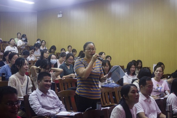最后,冯铁山教授展示了优秀学生的实作,加深了在场师生对本次讲座教学单元整合的理解与掌握。冯铁山教授还回答了现场师生的提问,教师代表对冯铁山教授的授课指导表达了充分的肯定与感谢。冯铁山教授独特的教学方式、幽默风趣的教学风格,使现场讲座气氛活跃,在场的师生受益匪浅,收获良多。